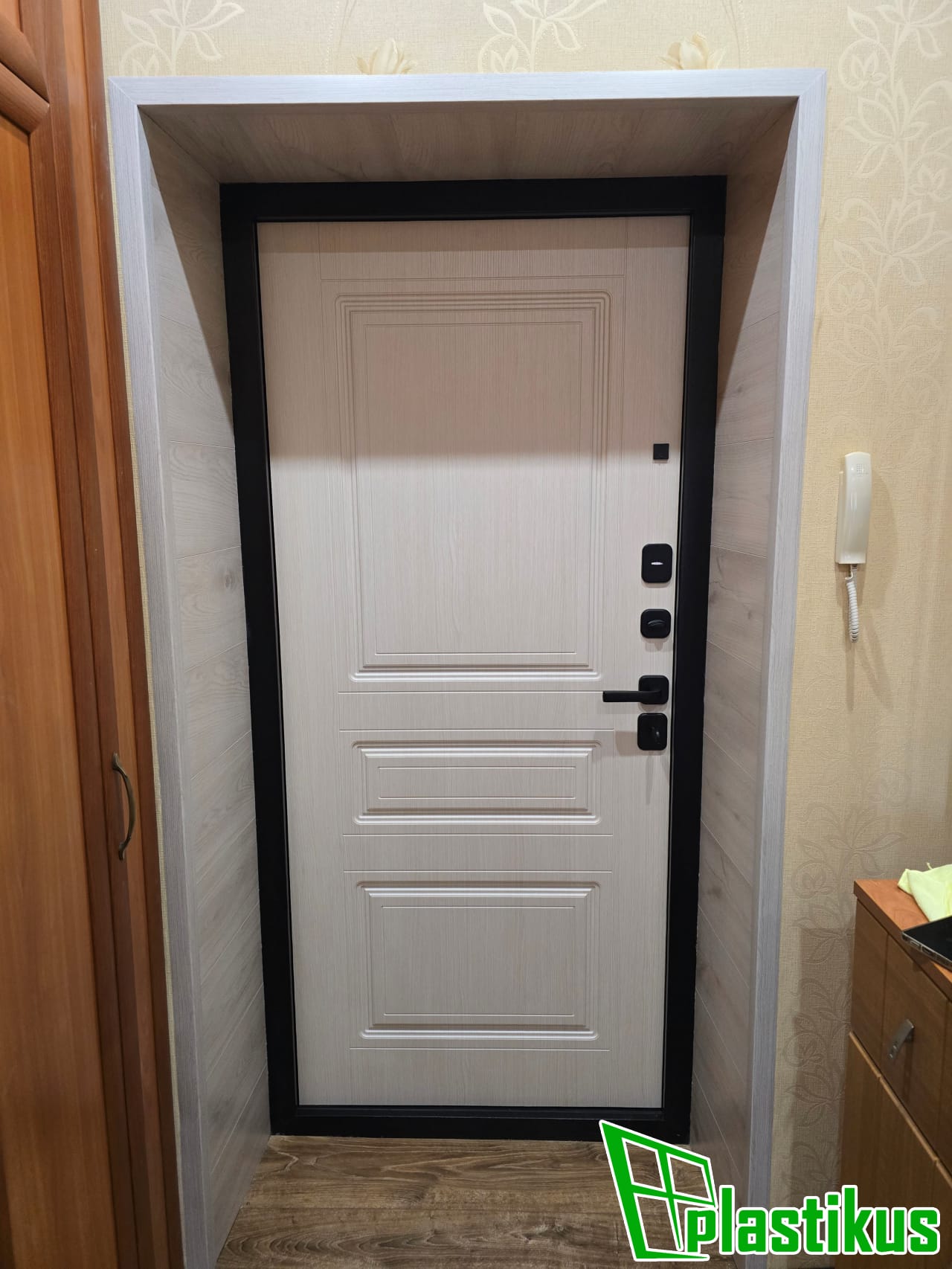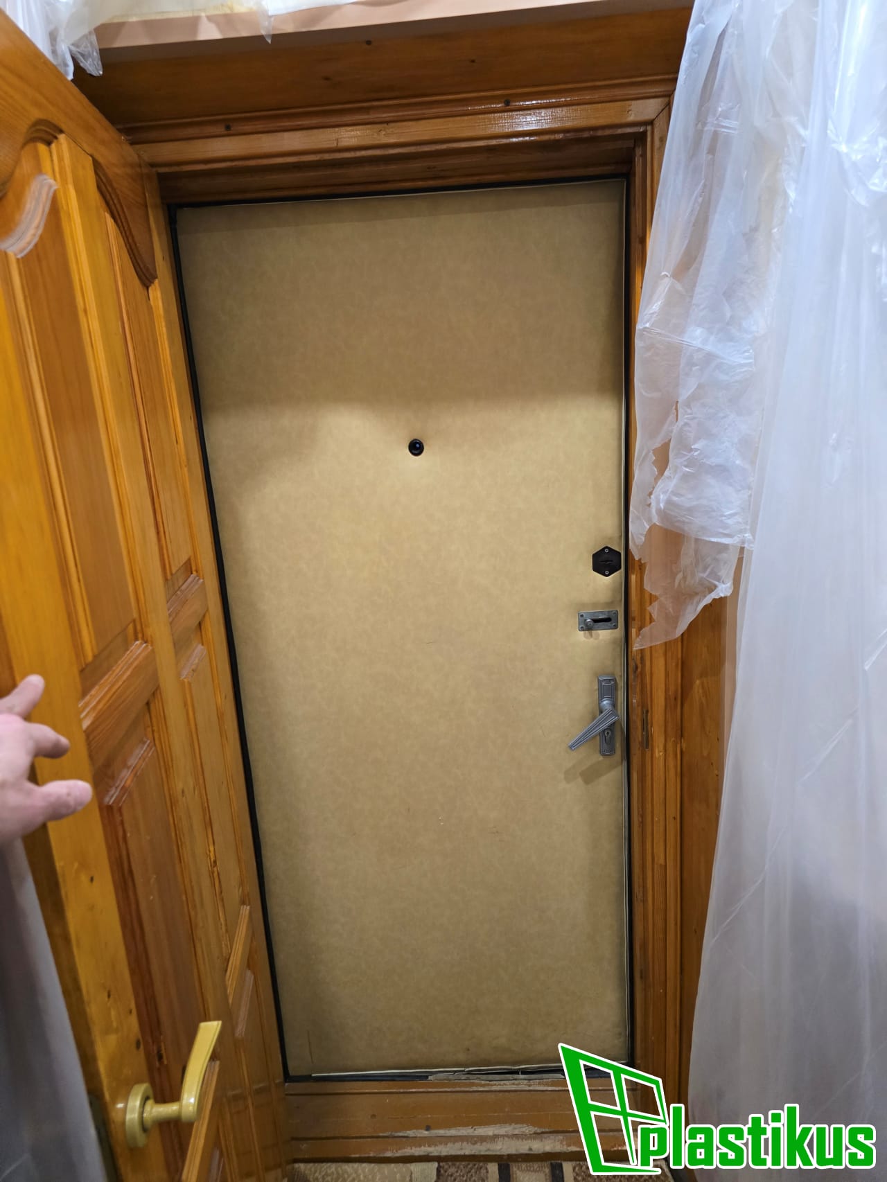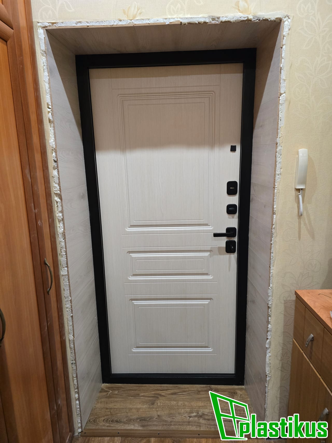 Установка откосов из пластиковых панелей на входную металлическую дверь в квартире в Кашире-2