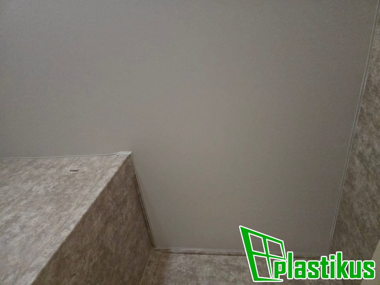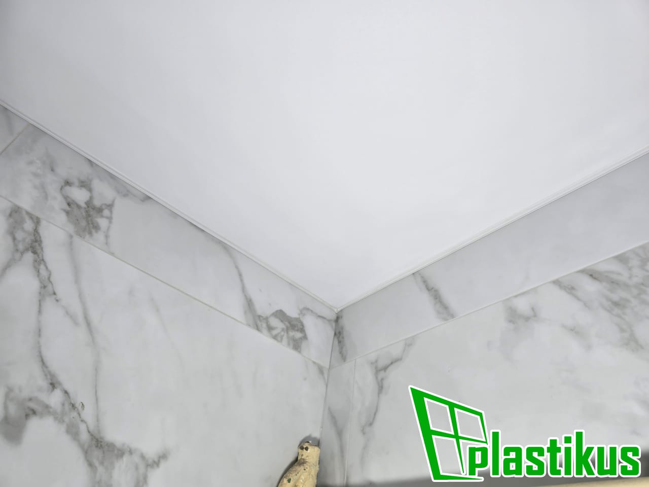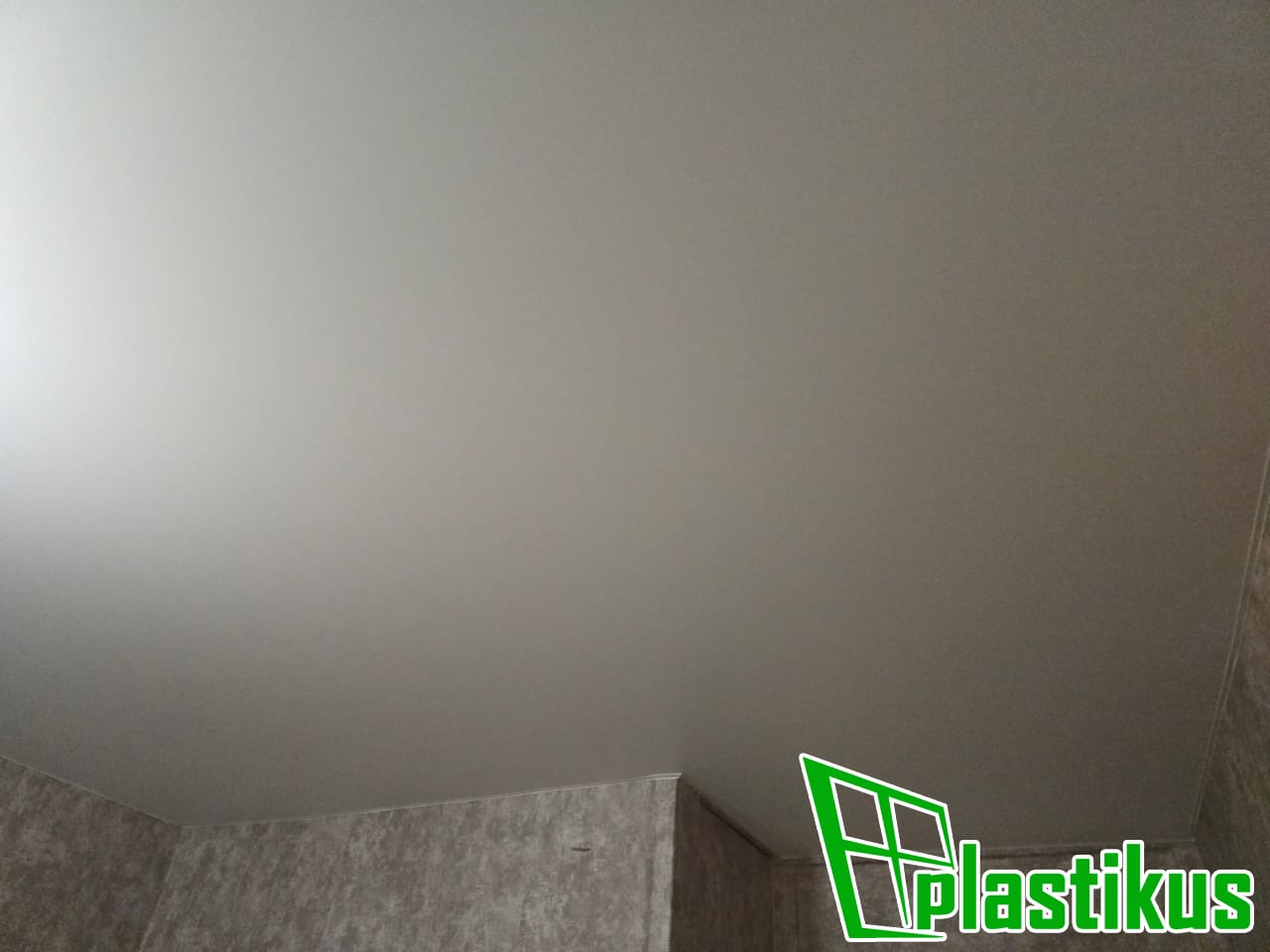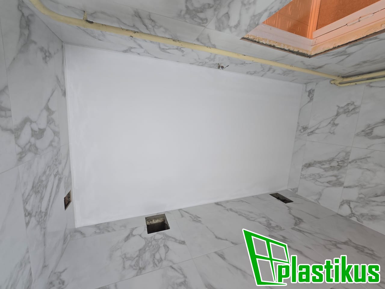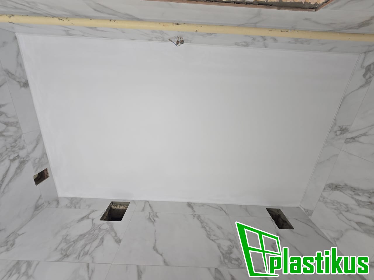 Полотно ПВХ бесшовное, белое, матовое. Монтаж на керамогранит на клей и распорки.