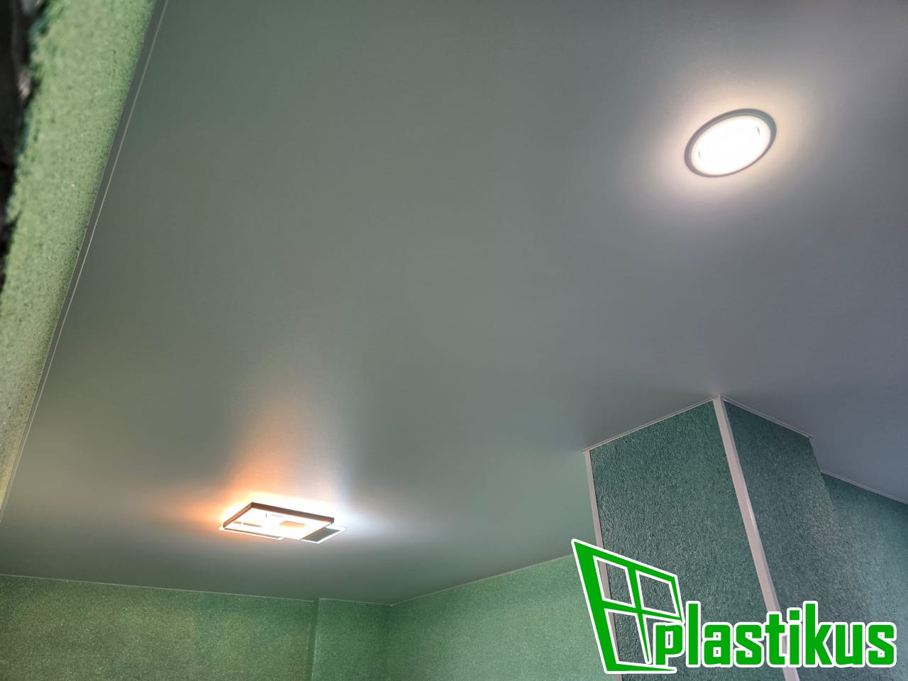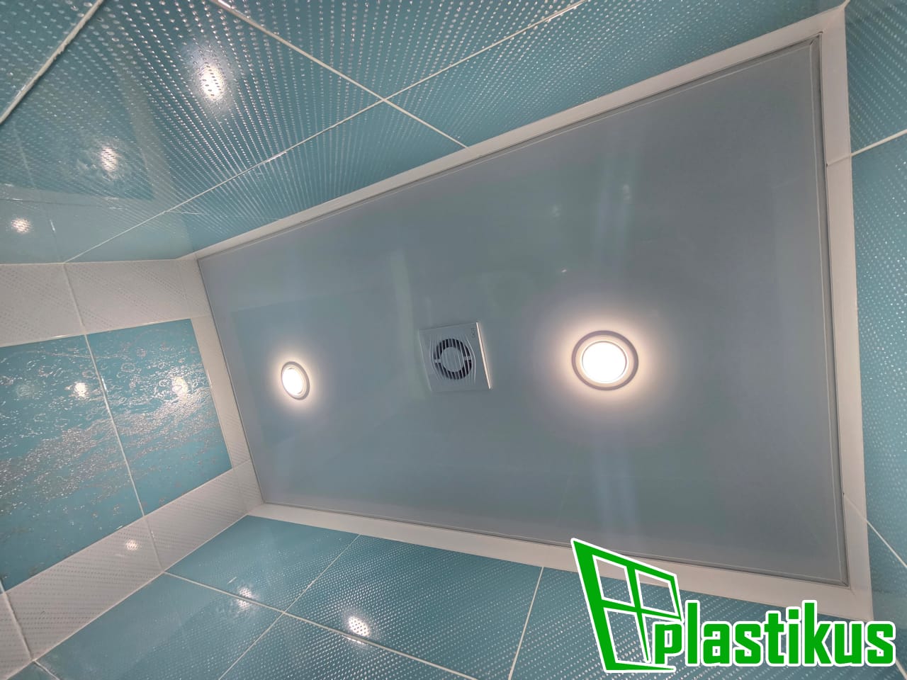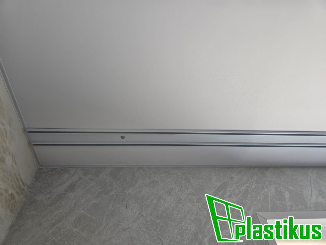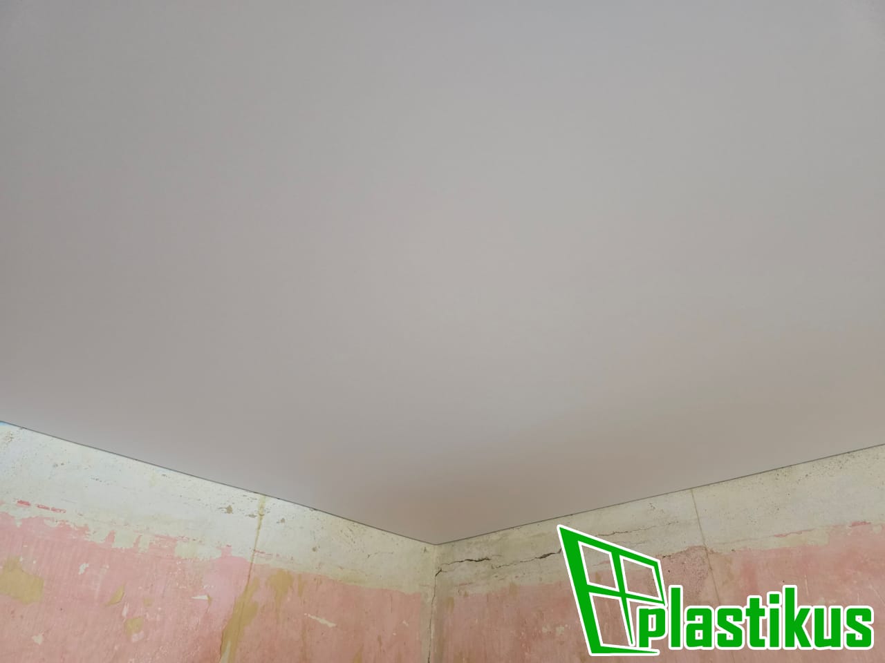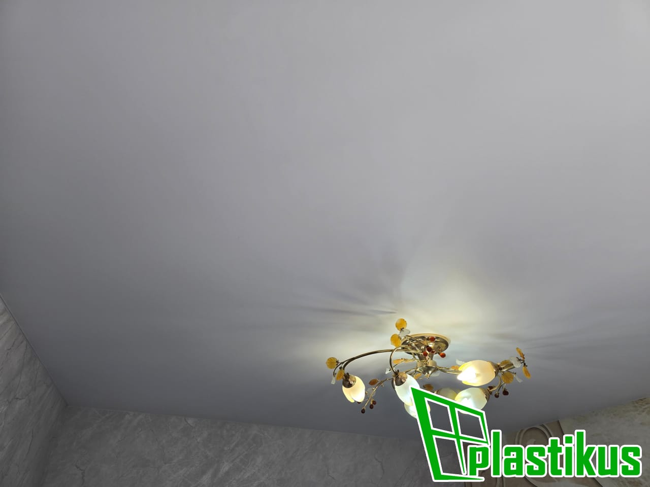 Полотно ПВХ бесшовное, белое, матовое. Монтаж на керамогранит на клей и распорки.