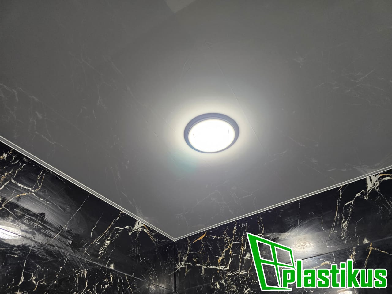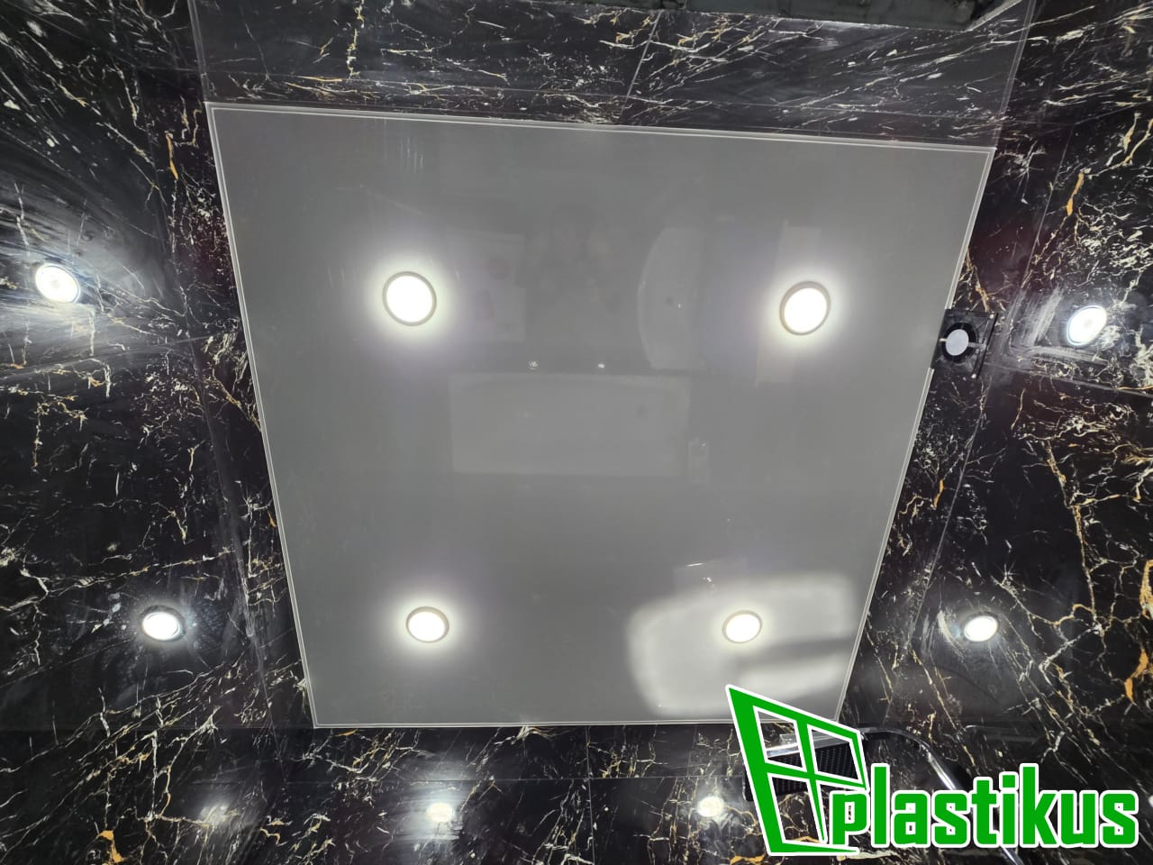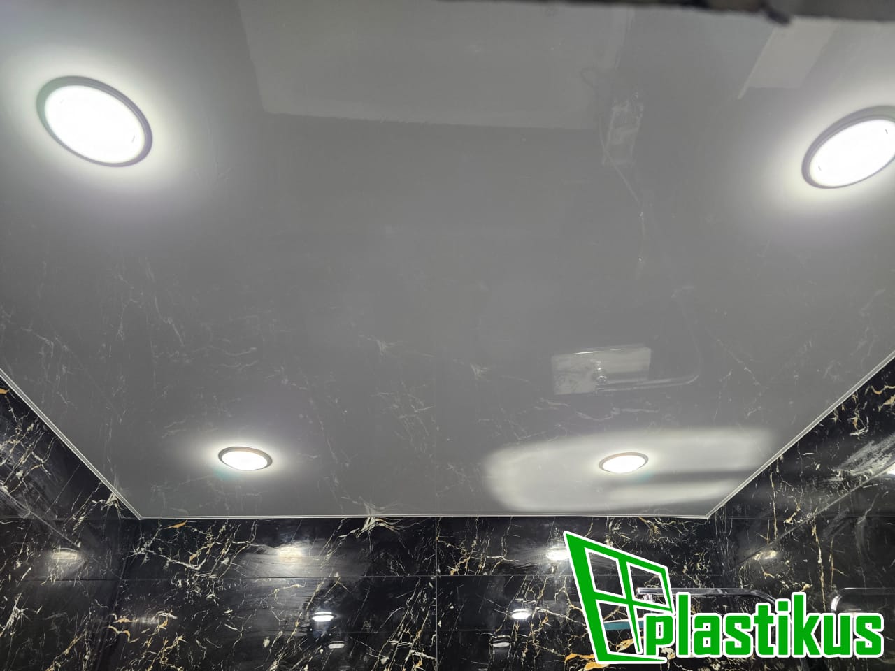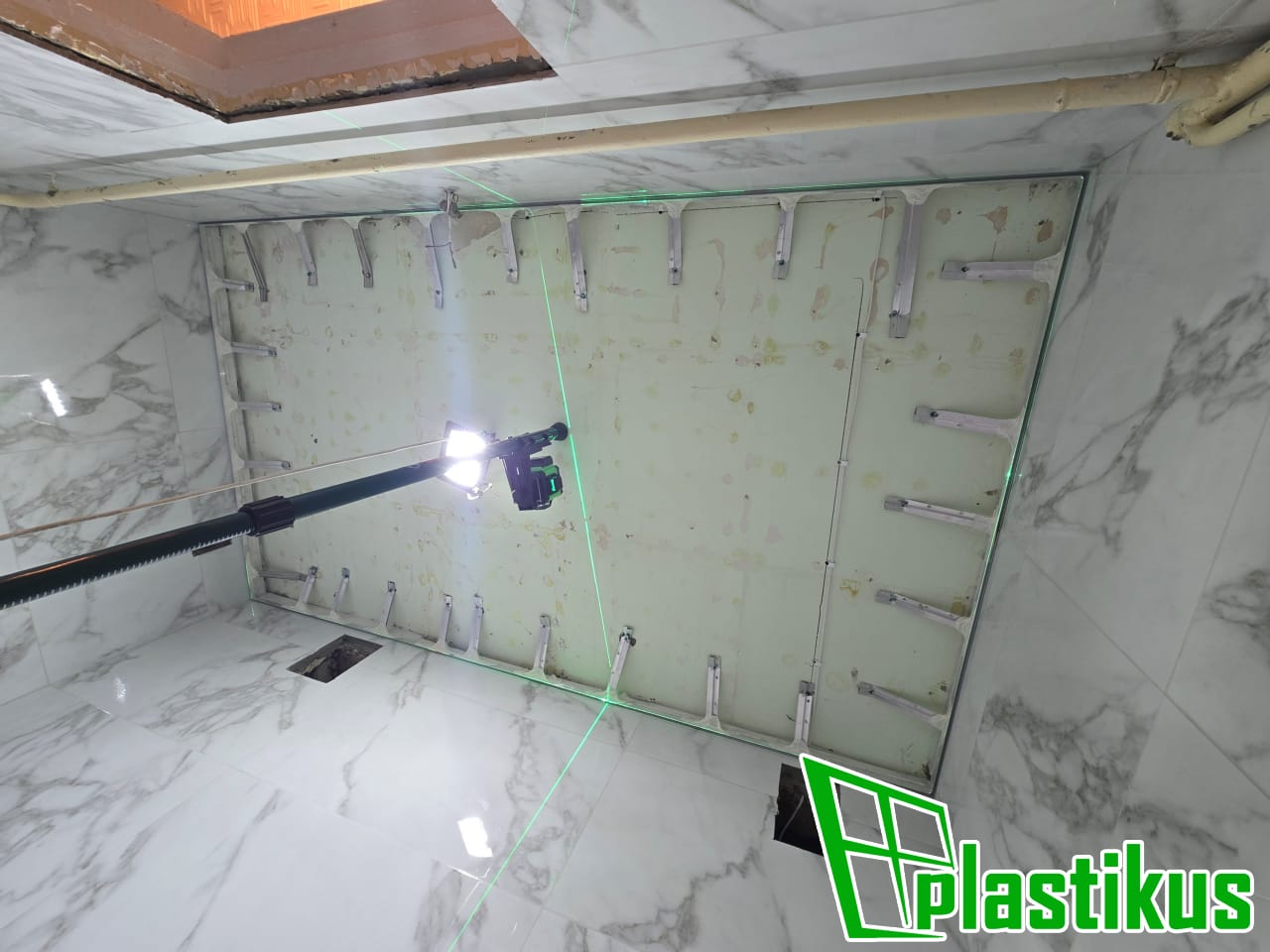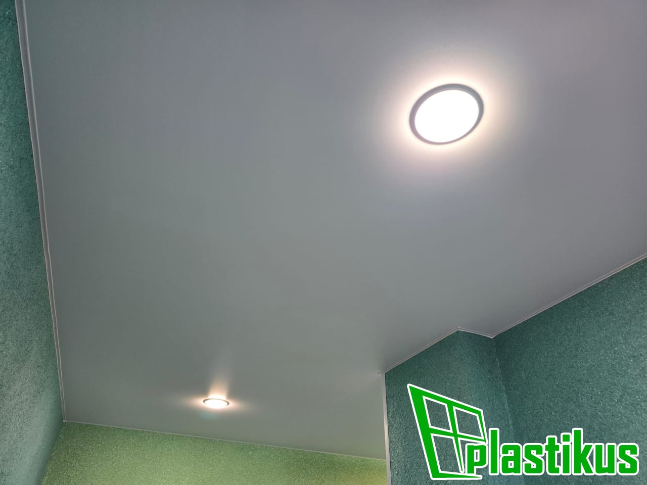 Полотно ПВХ бесшовное, белое, матовое. Монтаж на керамогранит на клей и распорки.