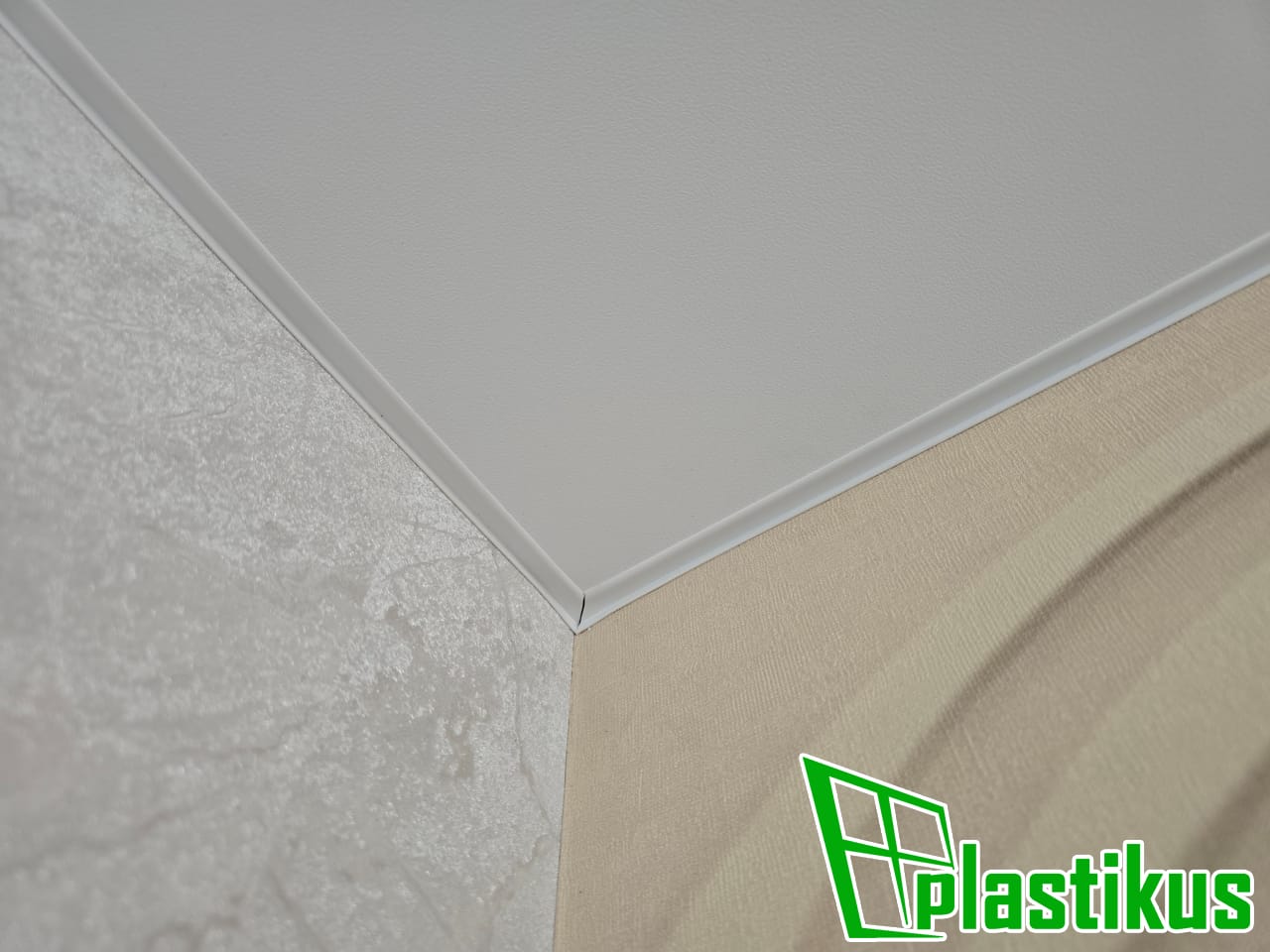 Гарпунная система. Белая вставка по периметру. Установка люстры. Обход внешнего угла. Установка гардин.