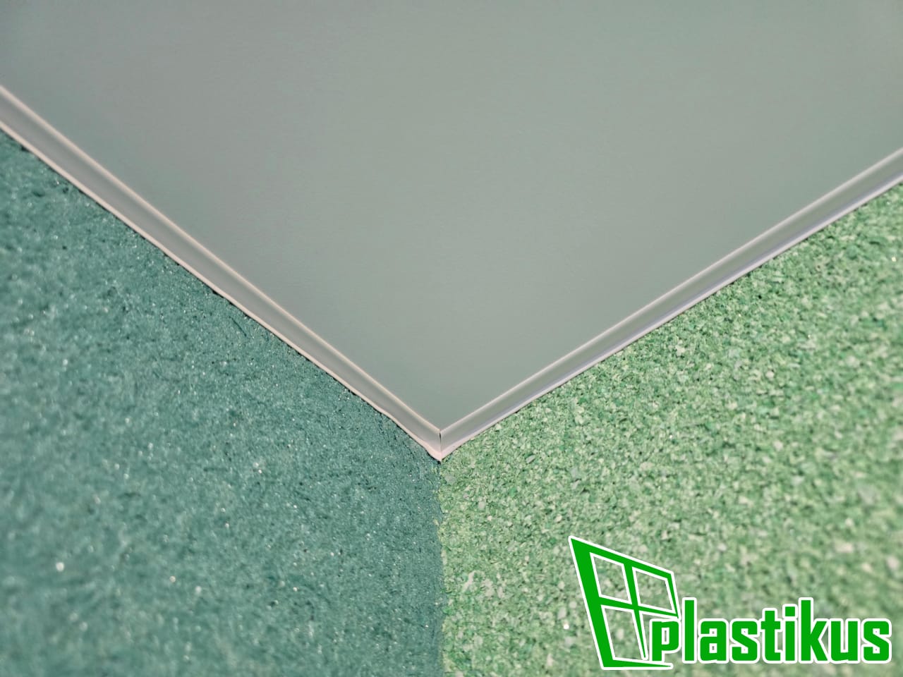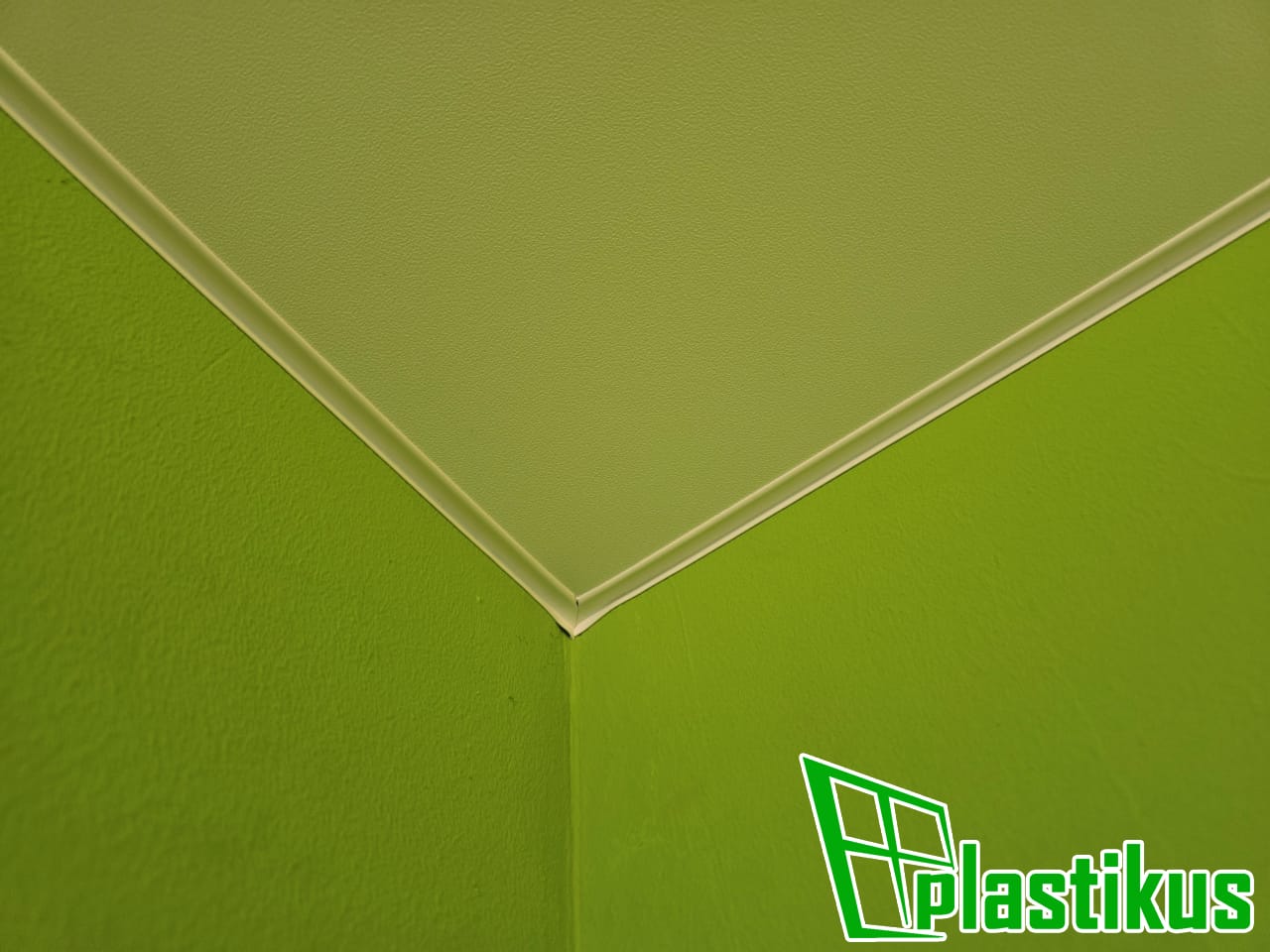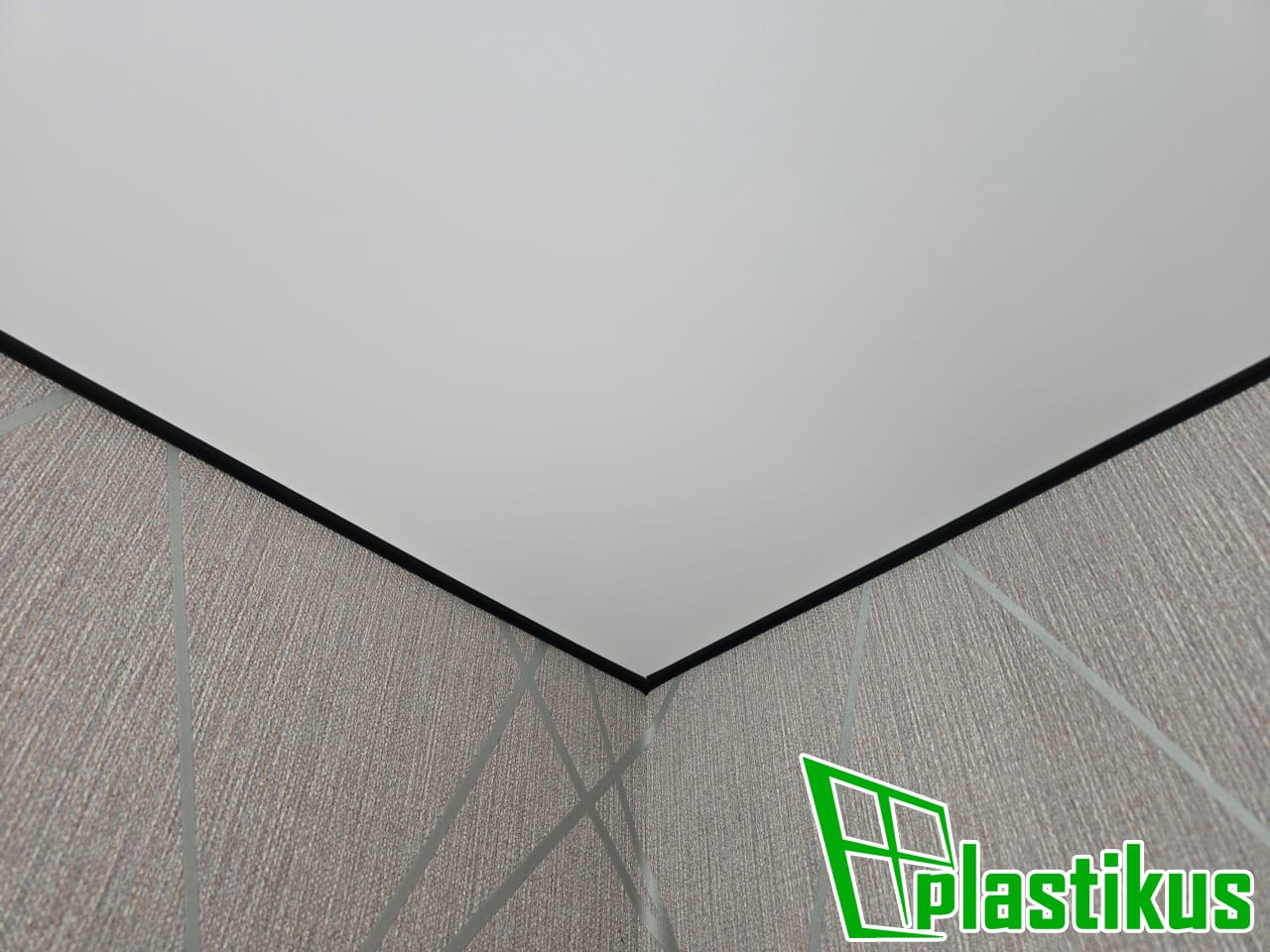 Полотно ПВХ бесшовное, белое, матовое, монтаж через разделительный профиль с уклоном.